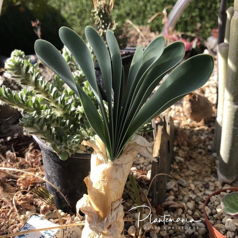 Bulb: Massive, solitary, glabrous, epigeous, ovoid to globose, to 18 cm in diameter. The bulb is protected by thick grey or brown, papery and firm outer tunics and leaf bases in a vaguely corky outer layer, probably offering some protection from drought.