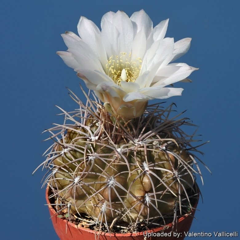 Gymnocalycium gibbosum f. longispinum hort.: The form “longispinum” has longer and stiffer spines but is practically identical to the normal form in stem and flowers characteristics. (Only known in cultivation)