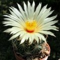 Description: Coryphantha palmeriSN|1061]]SN|1064]] is a small solitary globose cactus with usually one stout hooked central spines, it is one of the many geographical forms of the extremely variable Coryphantha compactaSN|1061]]SN|1061]]. With the exception of the absence or existence of centrals, all the other characteristics are absolutely identical with Coryphantha compactaSN|1064]]SN|1061]], namely size and form of tubercles, number, size and arrangement of radial spines, flowers, fruits and seeds. Furthermore this species is one of those Coryphanthas which pass a purely radial-spined long youth stage in which they are already floriferous. Most of the plants after several years develop the central spines, giving the plant its sea urchin appearance.