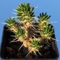 Spines: 3 from each areole, the 2 laterals very short (occasionally only one or absent), the central one round to flattened above, rigid, 15 to 25 mm long.