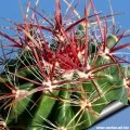 Description: Ferocactus pilosusSN|13424]]SN|13424]] is a simple or clumping barrel/column cactus with thick red spines. In habitat plants must be a great age, often forming into quite massive groups, with several subsidiary barrels growing from the main one, with deep green bodies densely covered with bright red spines up its entire length. Most plants have bright red spines with bristle-like, white radials—a wonderful contrast, but in some populations the white bristles are occasionally absent. Such variation has led to establishment of several names for this species.