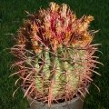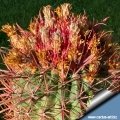 Ferocactus cylindraceus (Engelm.) Orcutt: Colourfull barrel cactus forming in age a mound of thorns and then a narrow column up to 2m tall, with attractive curved spines that partly obscure the green stem. The spine colour is red but also yellow or pale grey. Distribution: southern California, southwestern Arizona, northern Baja California, and northwestern Sonora.