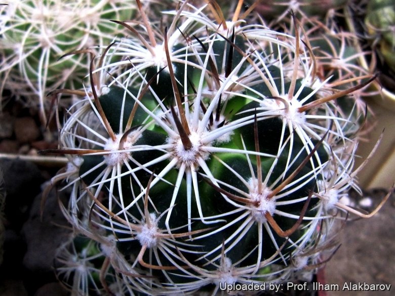 Stems: It usually does not cluster. Depressed-hemispheric or at times elongate-cylindric, 5-15(rarely to 25) tall, 6-12 cm broad with pronounced tubercles. Tubercles 9-15 mm long, 6-11 mm wide.