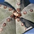 In older plants the areoles are large and woolly, often brownish/reddish,but also white/yellowish to tan/black. (Astrophytum myriostigma) Photo by: Cactus Art