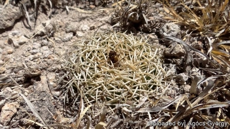 In habitat. Spines are pectinated pale-yellow/white with darker tips later turning grey. (Coryphantha retusa) Photo by: Agócs György