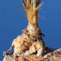 Stem: Very reduced, shortly cylindrical, lacking ribs, with papyraceous bristles covering the collar and the stem apex, the bristles probably originate from the basal rest of the tubercles, the colour of the bristles of tubercles is coffee whit reddish tones, the stem bristle of plants growing in habitat rarely exceed the ground level.