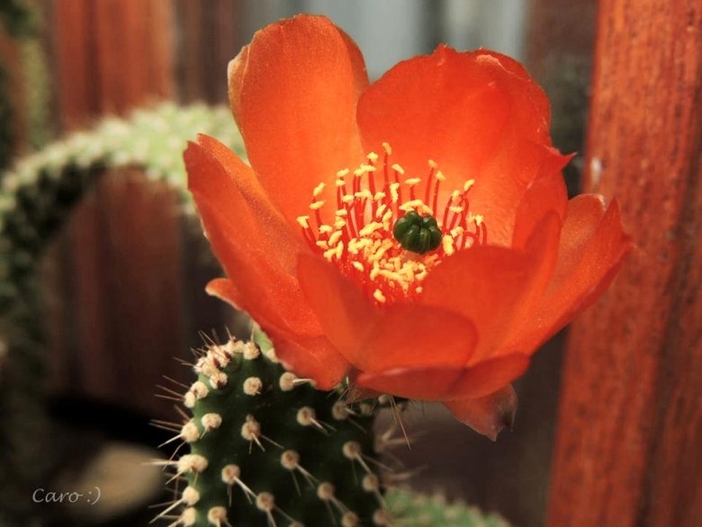 Tunilla erectoclada (Backeb.) D.R.Hunt & Iliff: has tiny pads only about 2 cm high, growth is mostly sideways. Flowers vivid orange to carmine red. Origin: unknown, supposedly in Salta, Argentina.