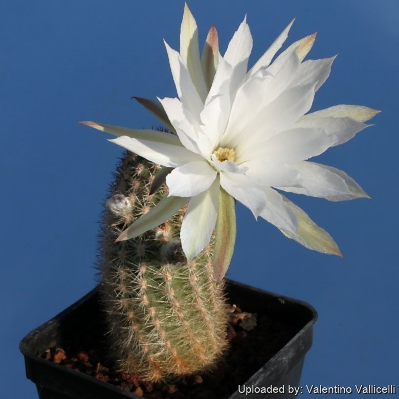Propagation: Seeds, grafting or (usually) cuttings. The seeds can be sown in pots of fine, well-drained sandy soil, any time during the spring when temperatures are warm. The seedlings should not be disturbed until they are well rooted after which they can be planted separately in small pots. Cuttings: wait until the offsets that appear at the base of old clustered specimens are 1/3 the size of the parent and then detach and plant. Cuttings will take root in a minimum temperature of 20° C (but better in hot weather). Cuttings of healthy shoots can be taken in the spring and summer. Cut the stem with a sharp, sterile knife, leave the cutting in a warm, dry place for a week or weeks (depending on how thick the cutting is) until a callus forms over the wound. Once the callus forms, the cutting may be inserted in a container filled with firmed cactus potting mix topped with a surface layer of coarse grit. They should be placed in the coarse grit only; this prevents the cut end from becoming too wet and allows the roots to penetrate the rich compost underneath. The cuttings should root in 2 to 6 weeks. Sometimes it is grafted onto a strong grafting stock like Selenicereus sp. to avoid root rot problems as plants grafted on an hardy stock are easy to grow and no special skill is required. Such grafted seedlings can be been successfully cultivated for years.