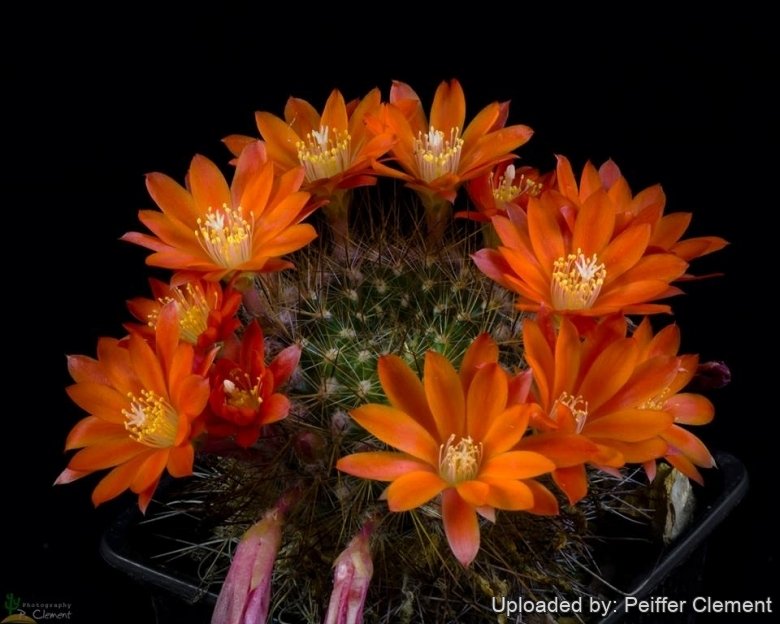 - Rebutia donaldiana A.B.Lau & G.D.Rowley: "Donald’s Red Crown"n" It develops a dense clump of small, dark heads with brown spines which make a perfect backdrop for the small, dark orange-red, numerous flowers. It quickly begins to form a large, tight mound and it then proceeds to hide it all under a dense blanket of its flowers.