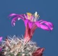 Description: Mammillaria deherdtianaSN|5387]]SN|5387]] var. dodsonii is a high-altitude form, similar in shape and size to the species but with fewer and longer radial spines. Usually solitary in the wild it clumps readily in cultivation. The flowers are very showy and could well be valued and cultivated by the sophisticated Mammillaria fanciers.