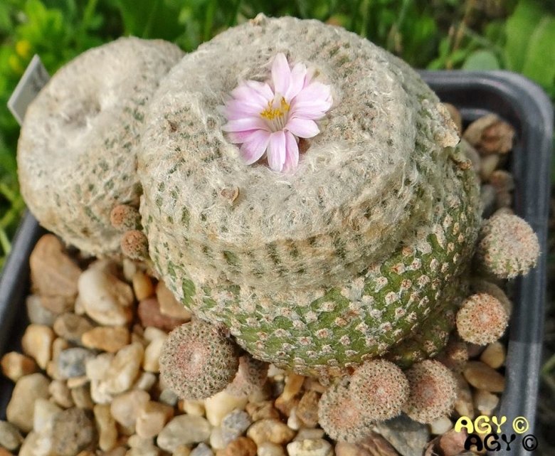 Areoles: Ordered in several lines that are not really ribs, just small undulations for which the term tubercles is perhaps too much. In cultivation areoles are whitish and hairy.