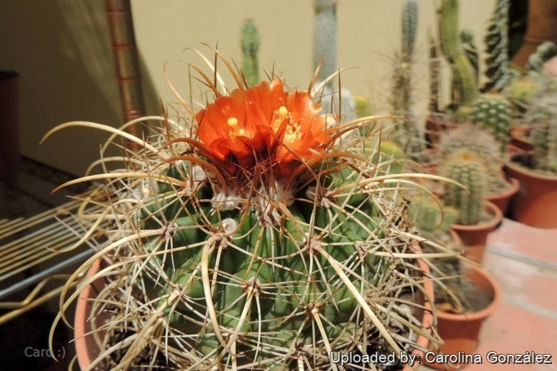 Description: Parodia maassiiSN|5784]]SN|5784]] is a small globular South American cactus species with long hooked spines and yellow to red flowers. The extensive distribution range of this species has led to the formation of many local forms or varieties which in the years have been formally named. Most of these names are not accepted by many botanists that treat them as synonyms, but they still have a value for a collector because they identify plants with particular characters.