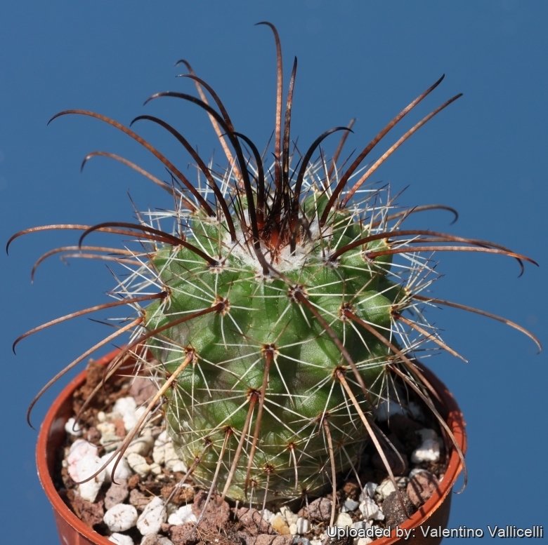 Description: Parodia supremaSN|5791]]SN|5791]] is one of the innumerable forms of Parodia maassiiSN|5784]]SN|5784]] which is one of the most widespread and morphologically variable taxon. It is a small globular cactus distinguished from the type species for its longer brown hooked spines and red flowers. The names Parodia supremaSN|5791]]SN|5791]] is not accepted by many botanists that treat it as synonym, but it still has a value for a collector because they identify plants with particular characters.