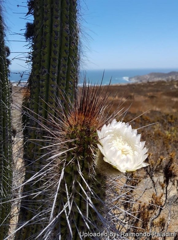 Habitat and Ecology: It grows in coastal hills (lomas costeras) and thorny scrub on sandy soils in areas where very little else grows. It's a very drought tolerant species. Despite the lack of rain where it lives, the extreme aridity is attenuated by the frequent, often dense, coastal fogs. The fog tends to concentrate in the form of a cloud band. It shows a recurrent pattern; usually it is overcast in the early mornings, the clouds dissipating during the late morning and returning during the late afternoons. Cacti near the coast are often covered with lichens.