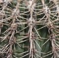 Radial spines: 7-10, whitish to greyish-black, to 2 cm long. Flowering areoles large, terminal, covered with brown felt, connected by furrows or confluent.