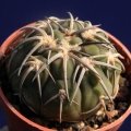 Gymnocalycium cardenasianum cv. Japanese Selection: has long, stout spines, eagle claw-shaped, typically-twisted, up to 4 cm long. Black turning dark grey as they ages. It has been selected in Japan.