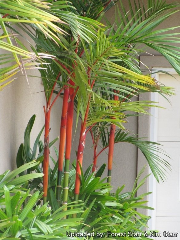 Use: It is grown as an ornamental plant in gardens. For its dense and clustering growth habit, primarily is used as a shrub, hedge or screen in subtropical or tropical landscapes. It also can be used as a specimen palm to show of its red canes, especially if older leaves are pruned. It also makes a great potted specimen for a patio or inside.