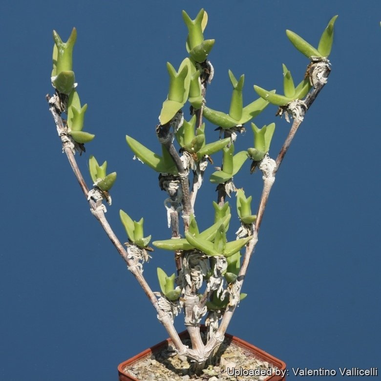 Description: Mitrophyllum dissitumSN|26242]]SN|26242]] is a persistent and large succulent mesemb that develops into a well-branched subshrub 30-60 cm tall.