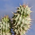 Stem: 0,5-1 m tall, greyish-green to pale brown, strictly cylindrical, 2,5-5 in diameter. The knobbly surface helps to scatter the sun's radiation, minimising the amount of heat they absorb.
