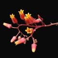 Flowers: Conoid-urceolate, pinkish-red with petals tipped with dark yellow on an inflorescence 50 cm tall. Peduncle 8-25 mm long,
