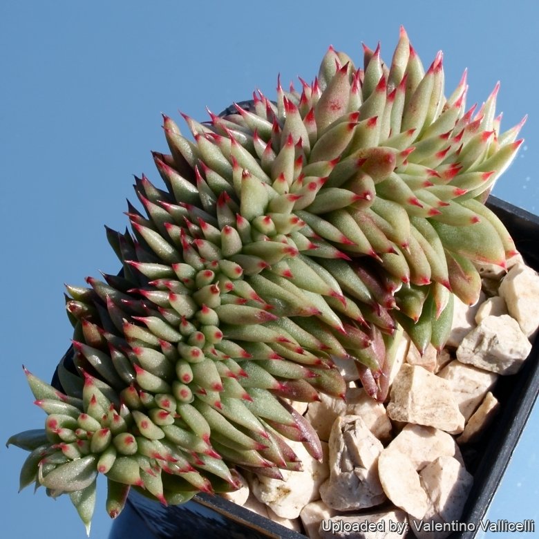 Crested form: The beautiful crested form develops fans of frosty green spikes tipped in red.