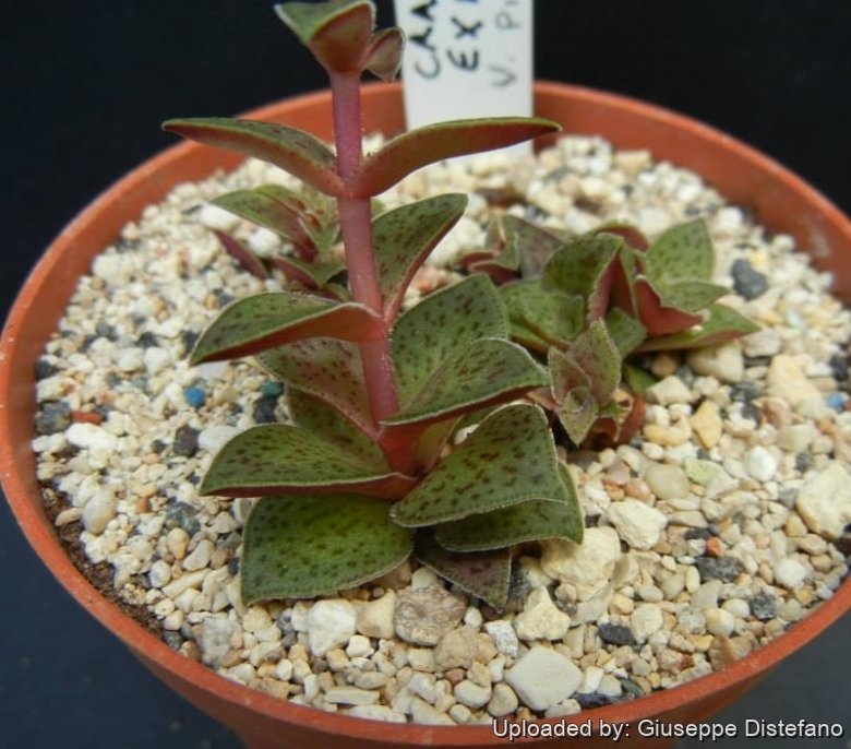Crassula exilis subs. picturata (Boom) G.D.Rowley: (subsp. cooperi) has broader leaves scattered with red spots, rarely fleshy, the flowering erect stem is hairy. Distribution: Graaff-Reinet and Aliwal North.