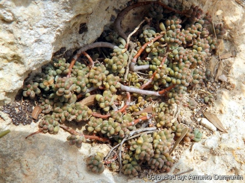 Vegetative habit at Dingli cliffs. Malta. Out of flower it resembles a typical small S. album but it rarely flowers and when it does each flower only has a single whorl of stamens [2].