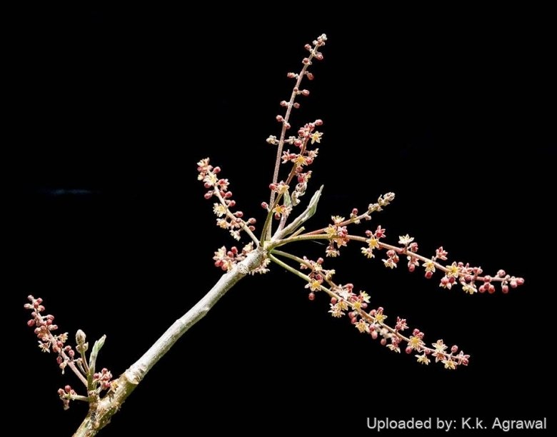 Fruits (drupes): Ovoid, 8-9 mm long, reddish, trivalvate.